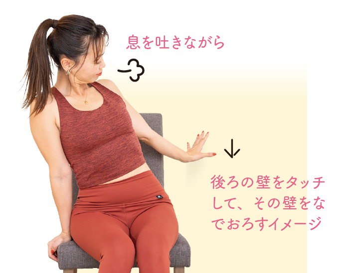 ❶~❸を3回繰り返し、4回目に腕を上げたら、体側を伸ばして深呼吸をしましょう。