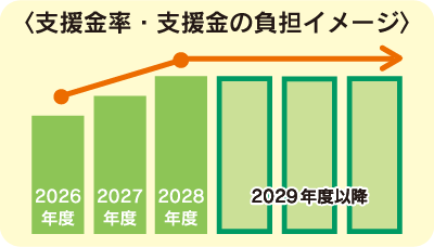 2026年度は、標準報酬月額30万円なら月345円、50万円なら月575円になる見込みです。- ※支援金率は、2026年度から0.23%ではじまり、2028年度には0.4%程度に段階的に引き上げられる見込みです。ただし、国が2028年度分支援納付金の最大規模を決めているため、右肩上がりで増えることはありません。