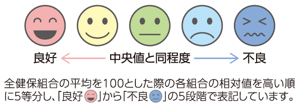 - ※( )内の数値は、単一組合平均を100とした際の当健康保険組合の相対値。