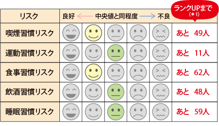 - (*1)“ランクUP”は、5段階評価のランクを1つ上げるための目安(リスク対象者を減らす人数)を記載