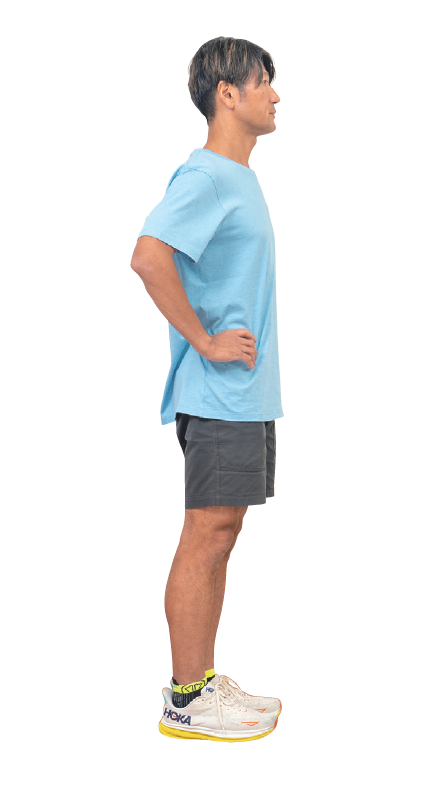 ※足首が硬くてバランスを崩してしまう人は、踵が浮いてしまってもOK。