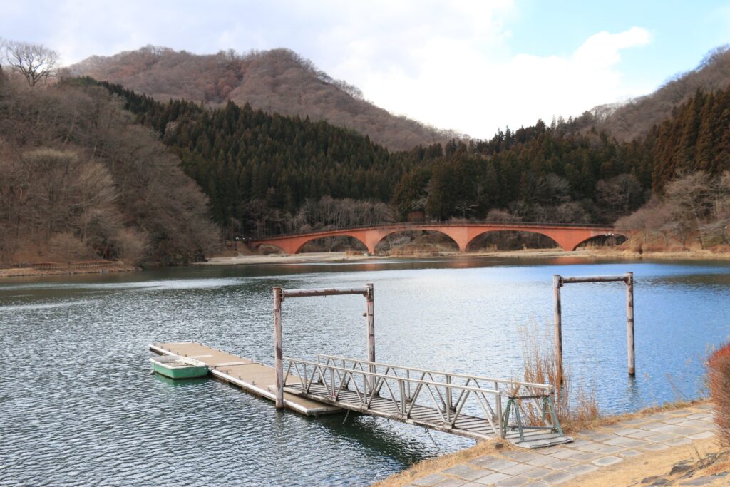 中尾川と碓氷川の合流点をせき止めて造った人工湖。湖畔には約1.2km の散策道があり、約20分で一周できる。秋は紅葉がすばらしい。