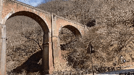 明治25年に完成した美しいレンガ造りの4連アーチ橋。川底からの高さが31m、長さは91mあり、わが国最大級。通称「めがね橋」として親しまれ、国の重要文化財に指定されている